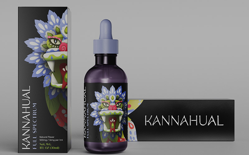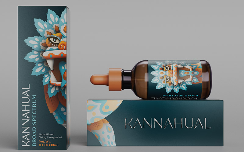 Kannahual CBD Drops es un producto que nace con el fin de destacar en un mercado muy solicitado. La marca busca diferenciarse de los «empaques usuales» para este tipo de productos y también llamar la atención de consumidores extranjeros. Por esta razón, el diseño está inspirado en una deidad mexicana «Quetzalcóatl», la serpiente emplumada. Es por lo que se adaptó con rasgos de hojas de marihuana y colores que representarán la categoría de los productos, dando al consumidor un producto de alta gama, calidad y sobre todo confiable.